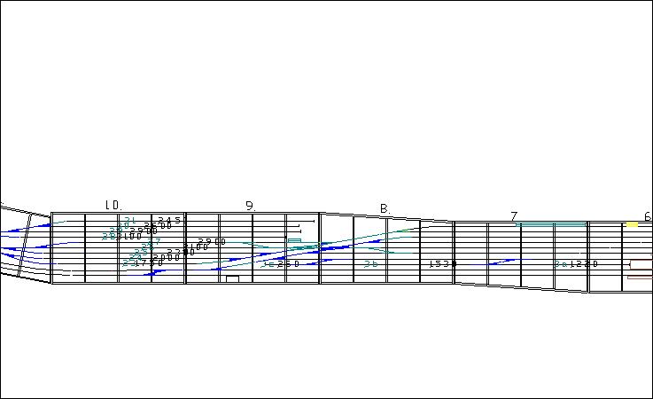 Bei der Ostseite habe ich einen Kompromiss zwischen Bernd's Vorschlag und meinem urspruenglichen Entwurf gesucht. Auf Rangiermöglichkeiten auf der Ostseite möchte ich nicht verzichten. Von West kommende Lok erreichen nun auch von Gleis 7 ohne Behinderung des "suedlichen" Verkehrs das Bw. Das Bw ist in dieser Groeße ein vertretbarer Kompromiss aber noch nicht endgültig. Das Aufstellgleis der OG könnte auch unterhalb des Umfahrgleises angeordnet werden, sodass Ladestrassengleis geringer verschwenkt werden muss. Gleise fuer Triebwagen/Reisezugwagen entfallen. Die Lokwarteinsel von der Westseite gefiel mir so gut, dass sie auch auf dieser Seite einzug gefunden hat.