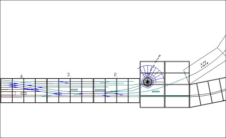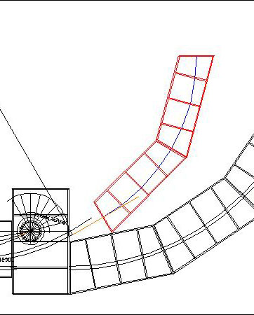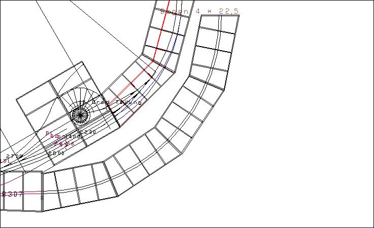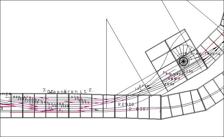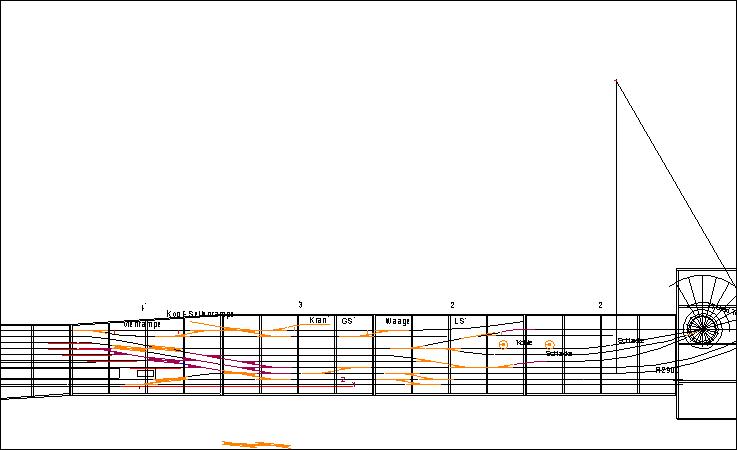 Der Entwurf besteht aus 15 Modulen a 1,5 m Laenge, 750 und 800 mm breit. Mit einem weiteren 90 Bogen misst die Betriebsstelle in der Laenge 23,6 m und passt an die "kurze" Wand einer Dreifeldsporthalle (27 m). Über xx Weichen läuft der Betrieb.
