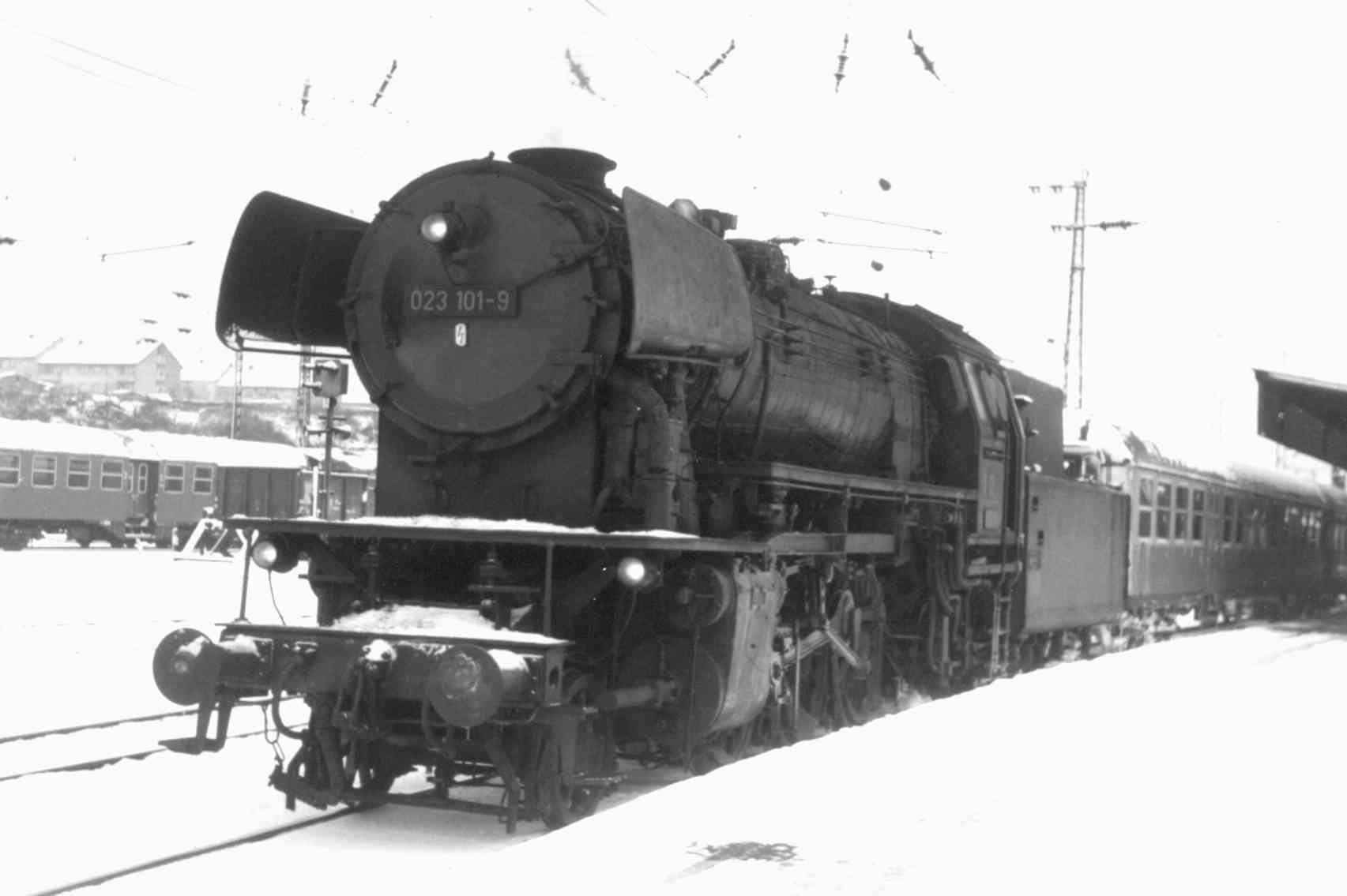 023 101-9 in Saarbrücken, vermutlich im Winter 1968/1969. Während die meisten Mindener