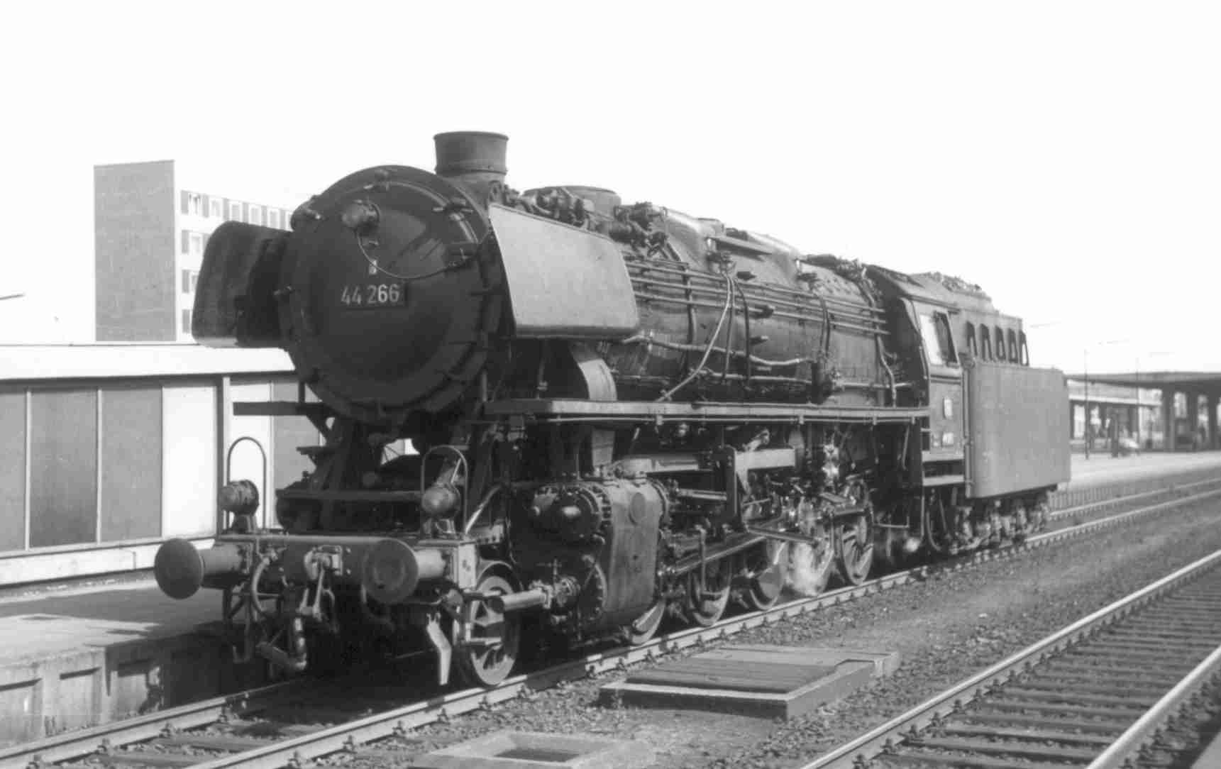 44 266 bei Durchfahrt BS Hbf Gleis 6, um 1967/1968.
