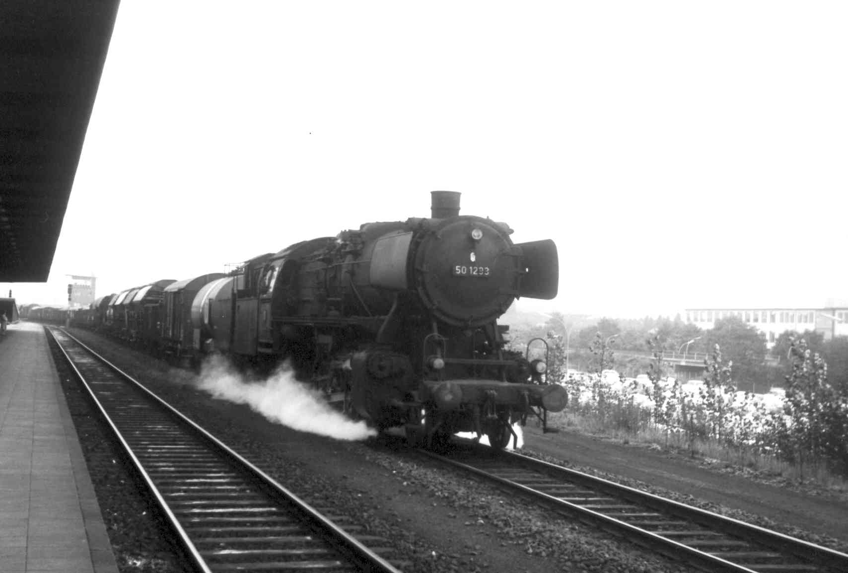 Auf Gleis 150 vor einem Güterzug Richtung Westen unterwegs. Um 1966/1967.