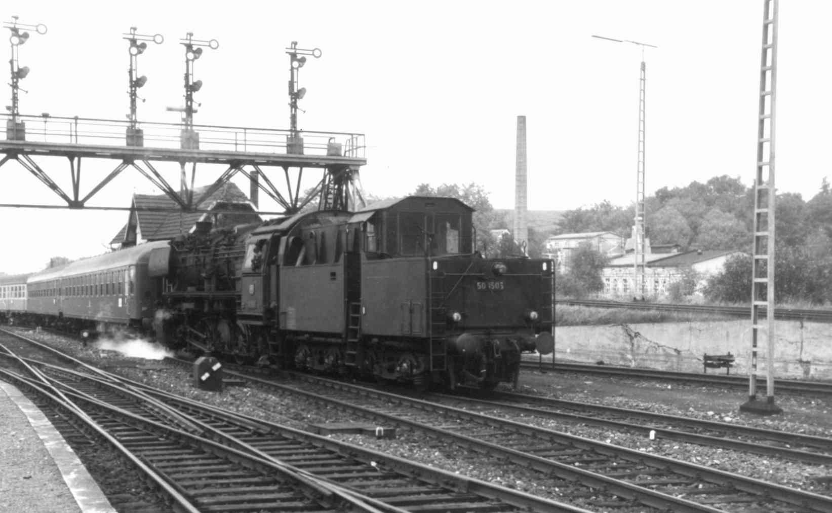 50 1505 unter der Bad Harzburger Signalbrücke beim rangieren, um 1967/1968.