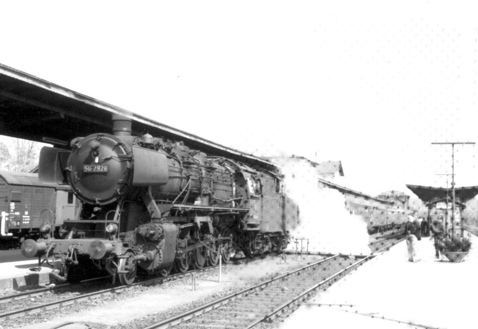 50 2928 am späten Vormittag auf Gleis 1 in Helmstedt. 1967/1968