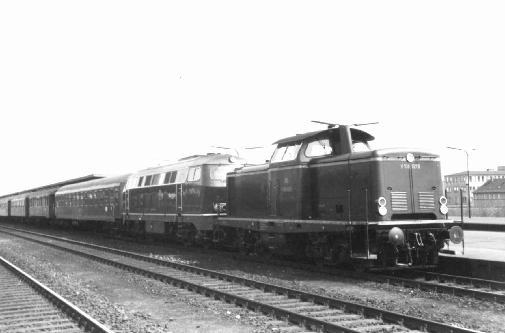 V100 1078 als Vorspannlok vor einer V160 auf Gleis 5 im Braunschweiger